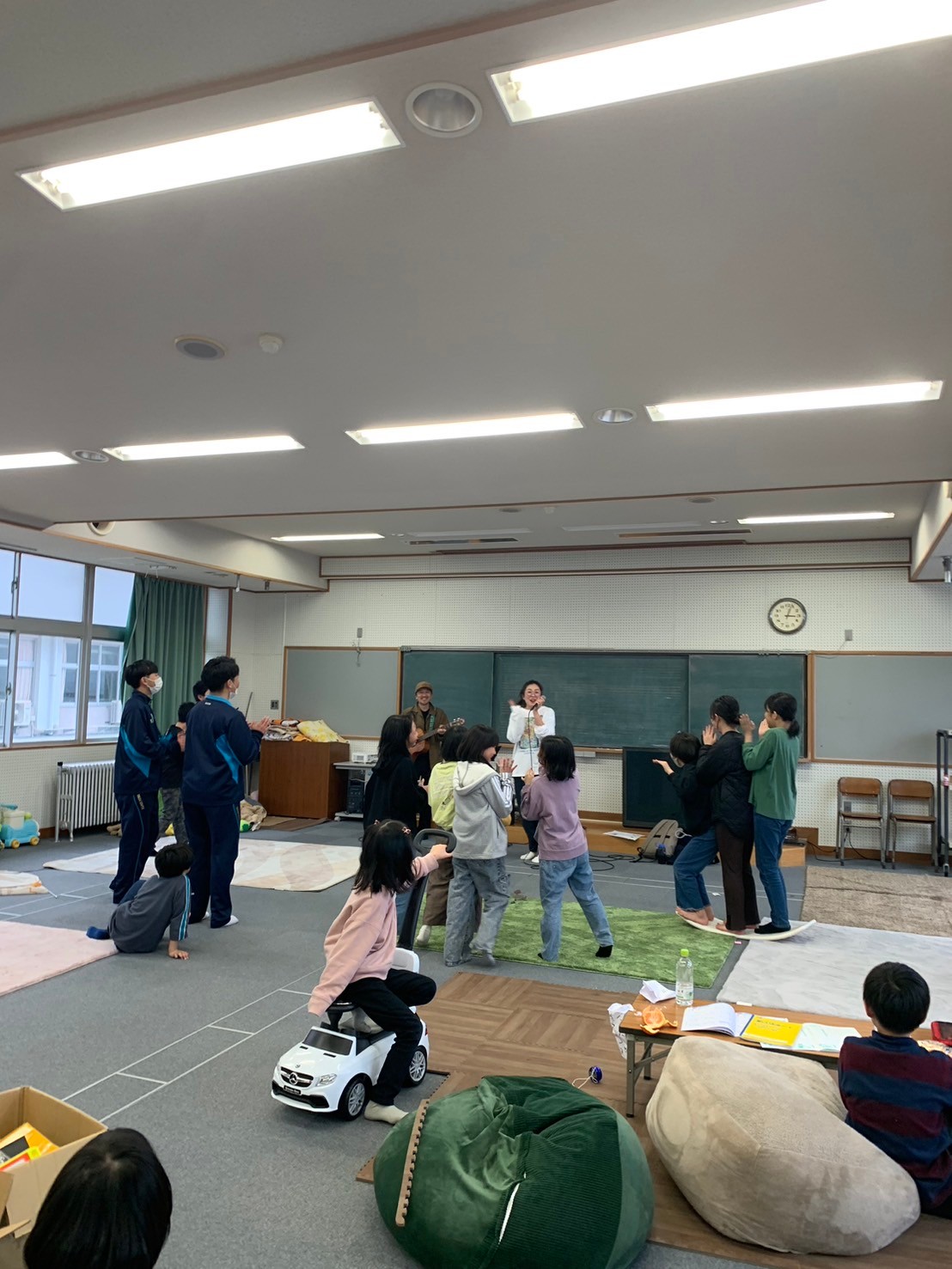 能登町にある能登高校内に開設されているこども部屋にて、被災者の子どもたちを対象にTakaisoundsによる音楽プログラムを開催しました。